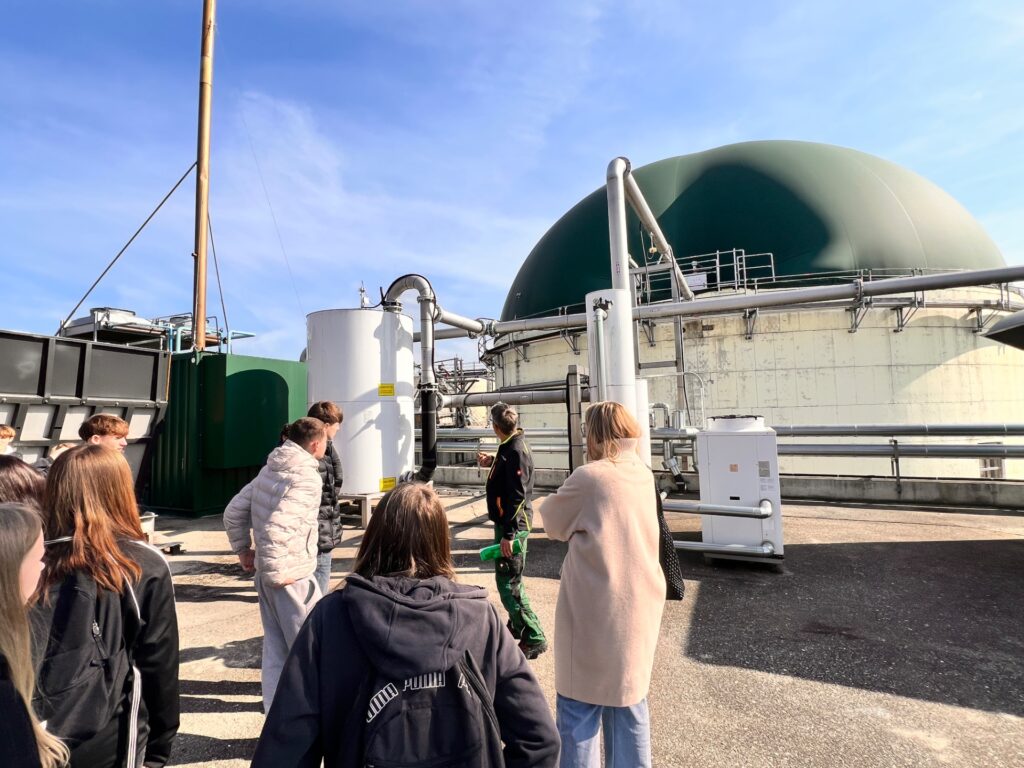 Anschließend wird der Bioabfall aufbereitet und in die Biogasanlage eingebracht. Dort entsteht durch Vergärung Biogas, das weiterverarbeitet wird. Dieses Gas wird gespeichert und zur Energiegewinnung genutzt. Besonders beeindruckend war, dass daraus Strom und Wärme erzeugt werden können. Uns wurde gezeigt, dass damit viele Haushalte versorgt werden können.